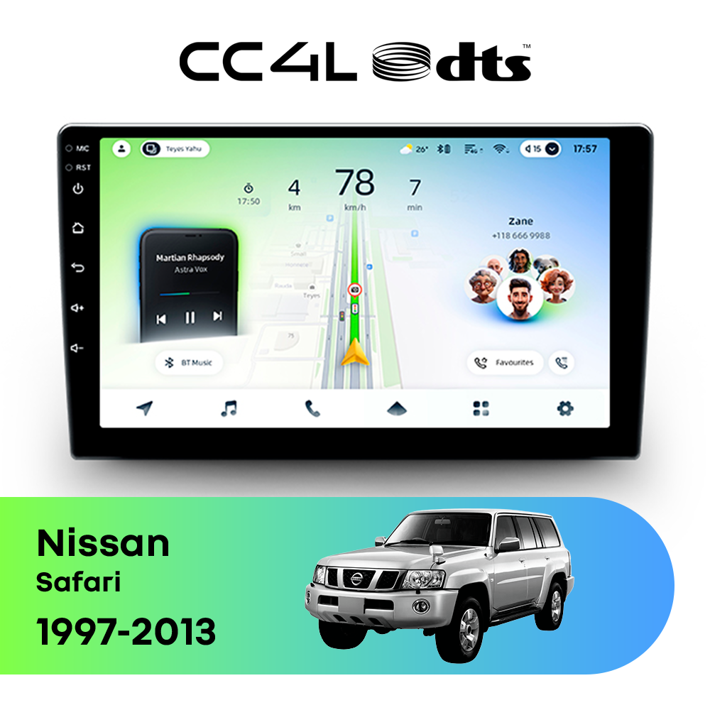 Teyes CC4L DTS для Nissan Safari 1997-2013 — штатная Android-магнитола с современным мультимедийным функционалом и акцентом на более насыщенное и качественное звучание в автомобиле.