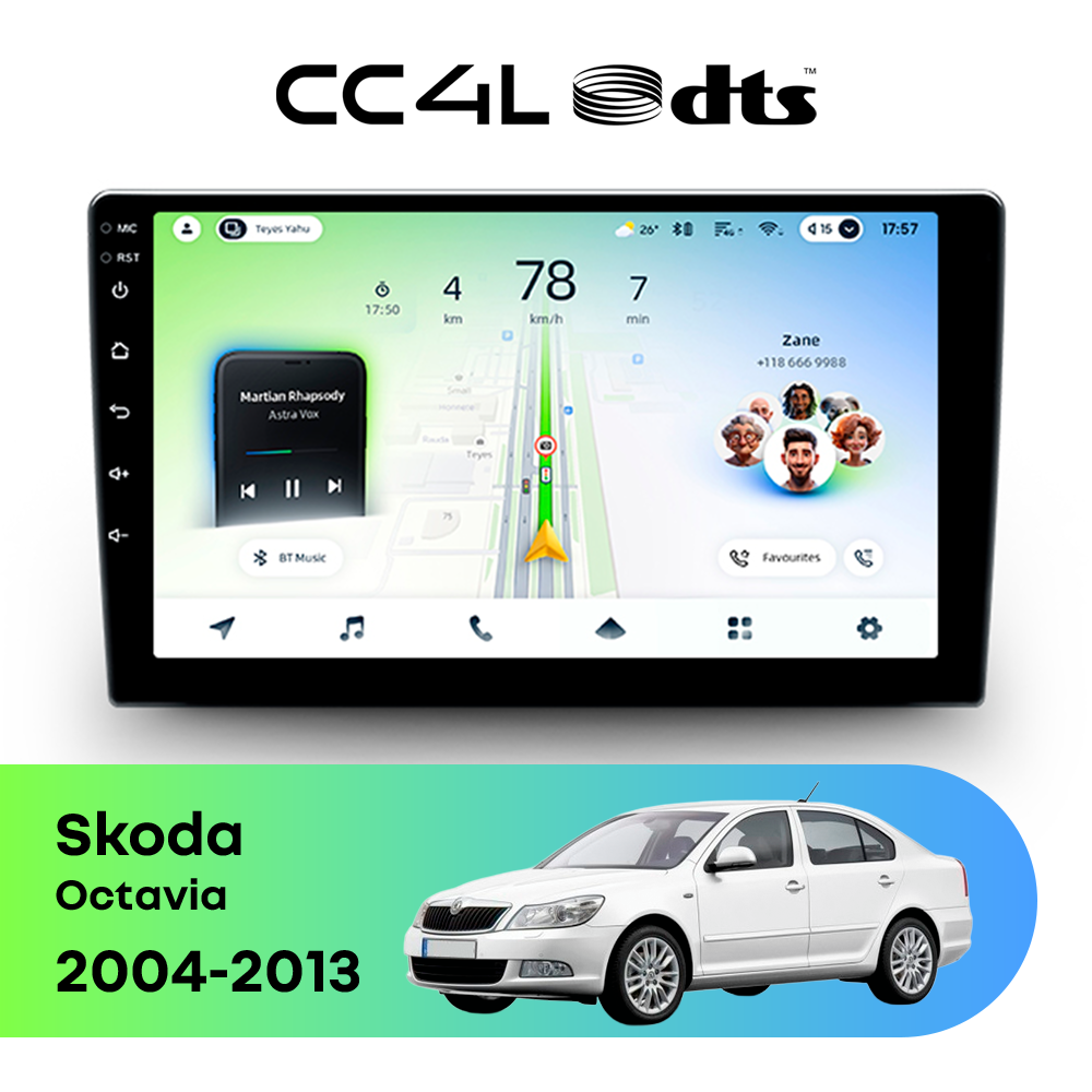 Teyes CC4L DTS Audio для Skoda Octavia II (2004-2009),II рестайлинг (2008-2013) — доступная штатная магнитола Android для комфортных поездок