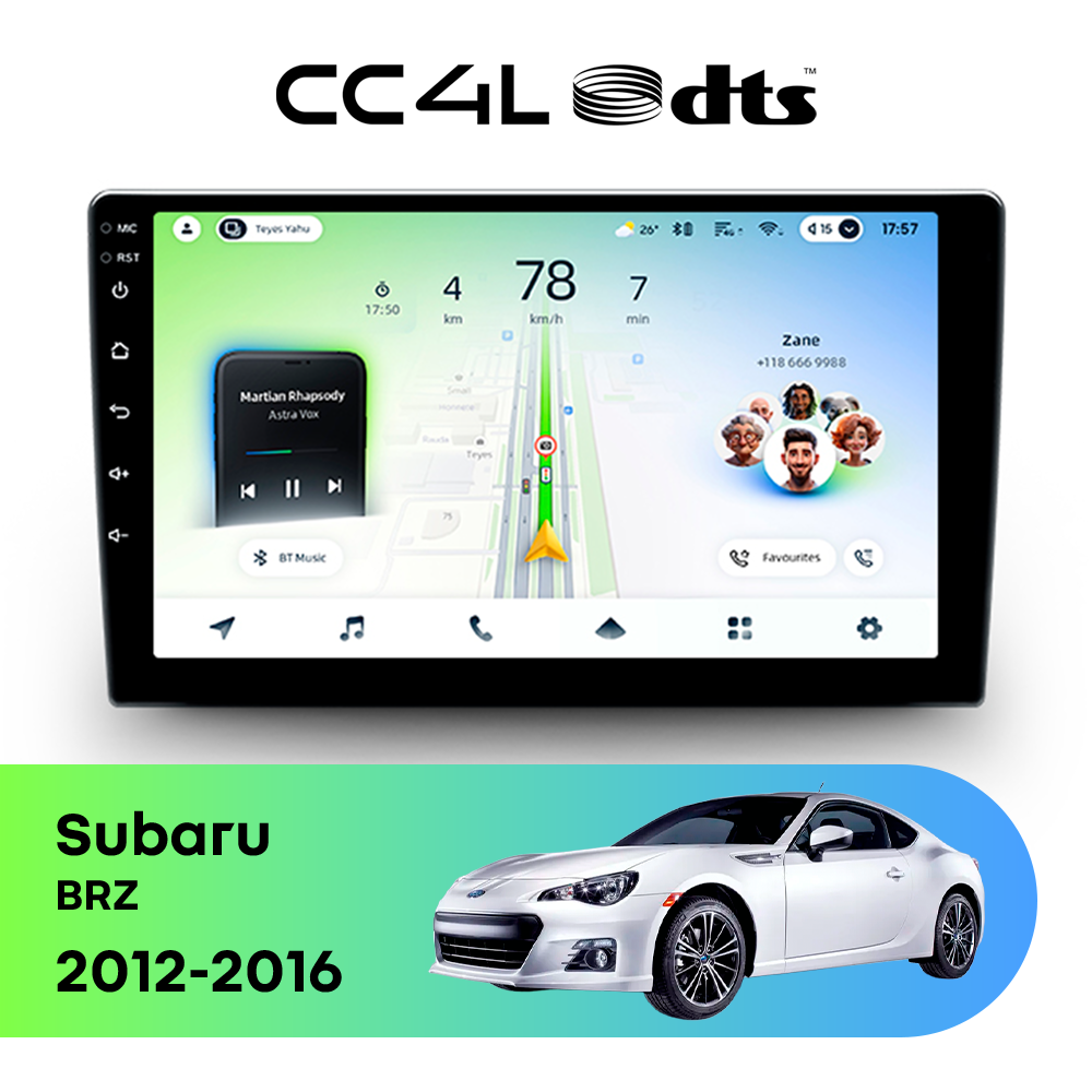 Teyes CC4L DTS для Subaru BRZ 2012-2016 — штатная Android-магнитола с современным мультимедийным функционалом и акцентом на более насыщенное и качественное звучание в автомобиле.