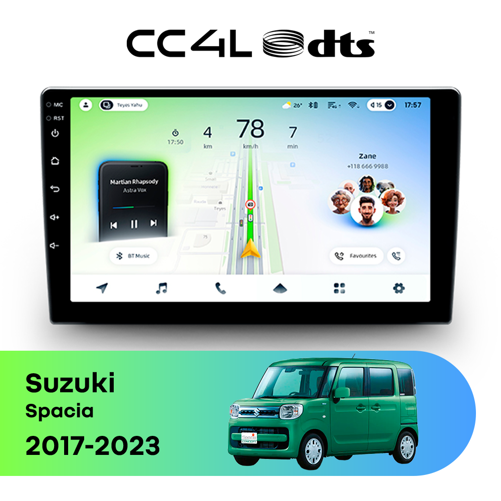 Teyes CC4L DTS для Suzuki Spacia 2017-2023 — штатная Android-магнитола с современным мультимедийным функционалом и акцентом на более насыщенное и качественное звучание в автомобиле.