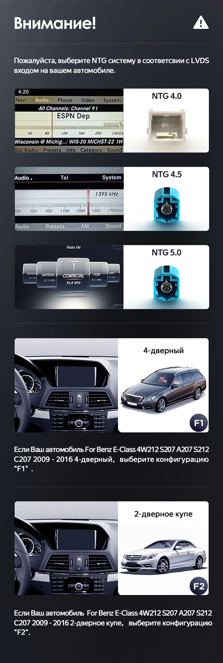 Рамка и проводка питания под магнитолу 12.3" для Mercedes-Benz E-класс 2013-2016 - комплектация [F1 B]