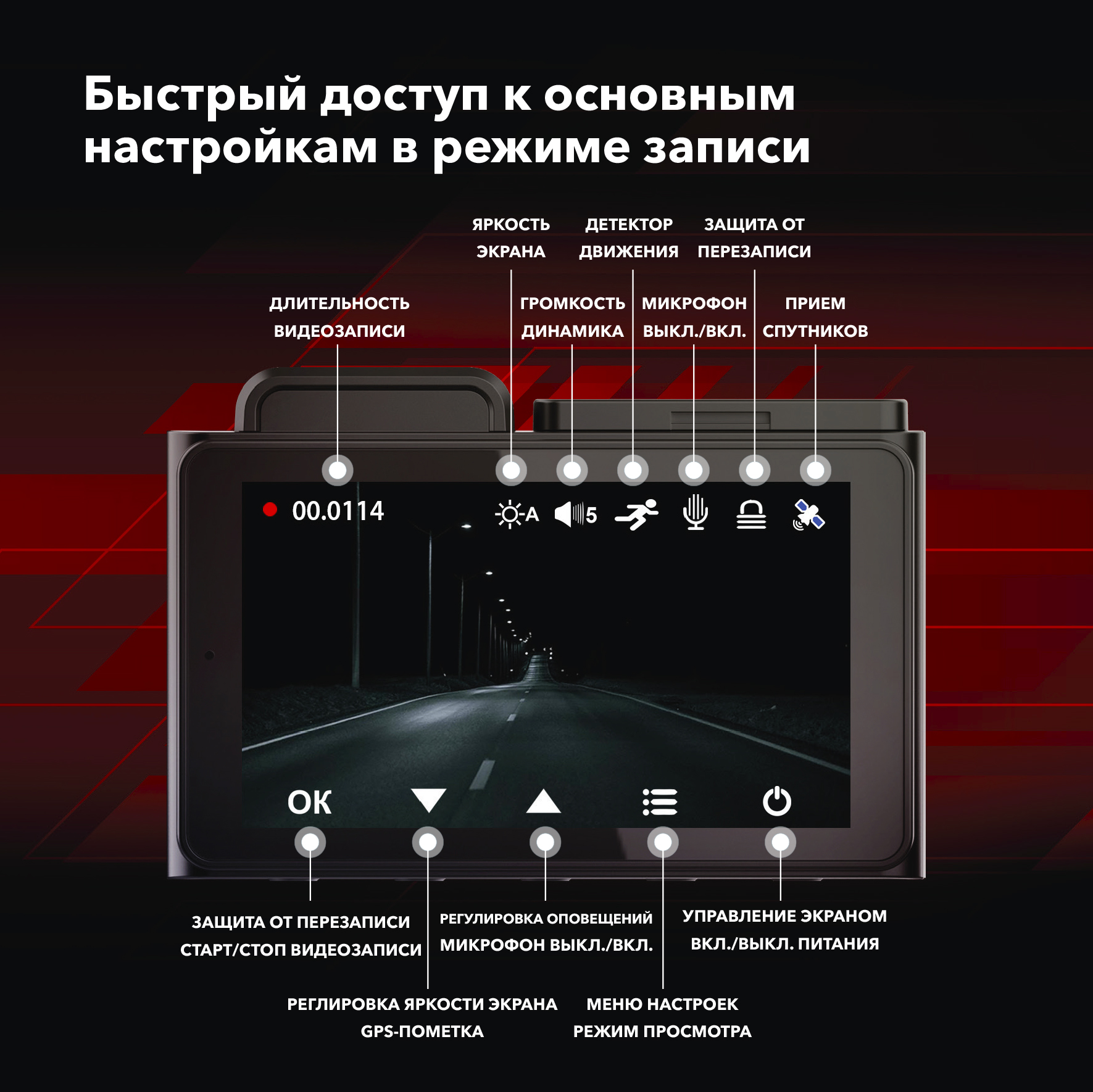 - Встроенный Wi-Fi для управления устройством и просмотра видеозаписей со смартфона